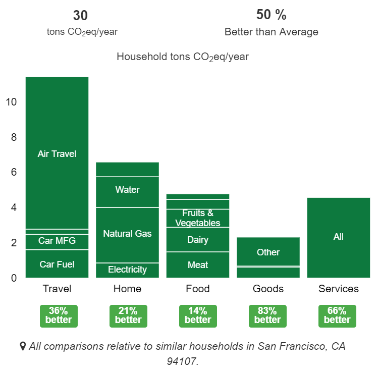 But we’re both pretty low-footprint for where we live, I think because we don’t own a car and mostly got around by bike or Caltrain last year.