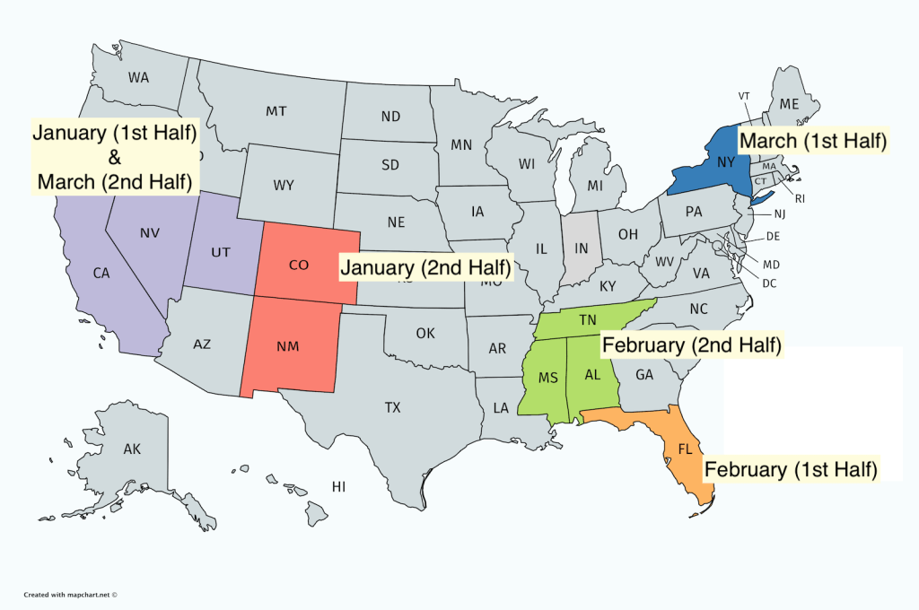 Over the first few months in 2019, we’re hoping to travel around the USA, sticking mostly to the warm bits. We hope to explore and live in places around the nation, to relax in the here & now and contemplate what comes next, and to spend time with friends & family along the way.